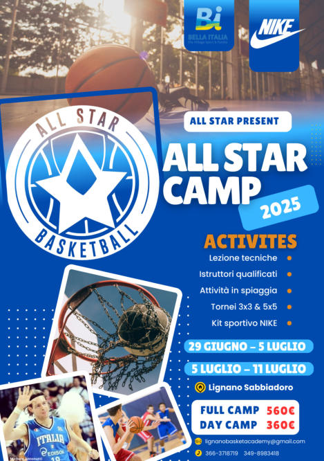 Sono aperte le iscrizioni al nostro CAMP ALL STAR BASKETBALL – Estate 2025.